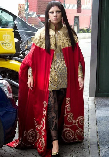 The outfit, which was delivered in Lisbon during Lady Gaga’s visit to the Portuguese capital, is composed of a dress, cape, boots and accessories, made of Portuguese cork, coated with gold and silver leaf, and hand-embroidered with metallic threads.