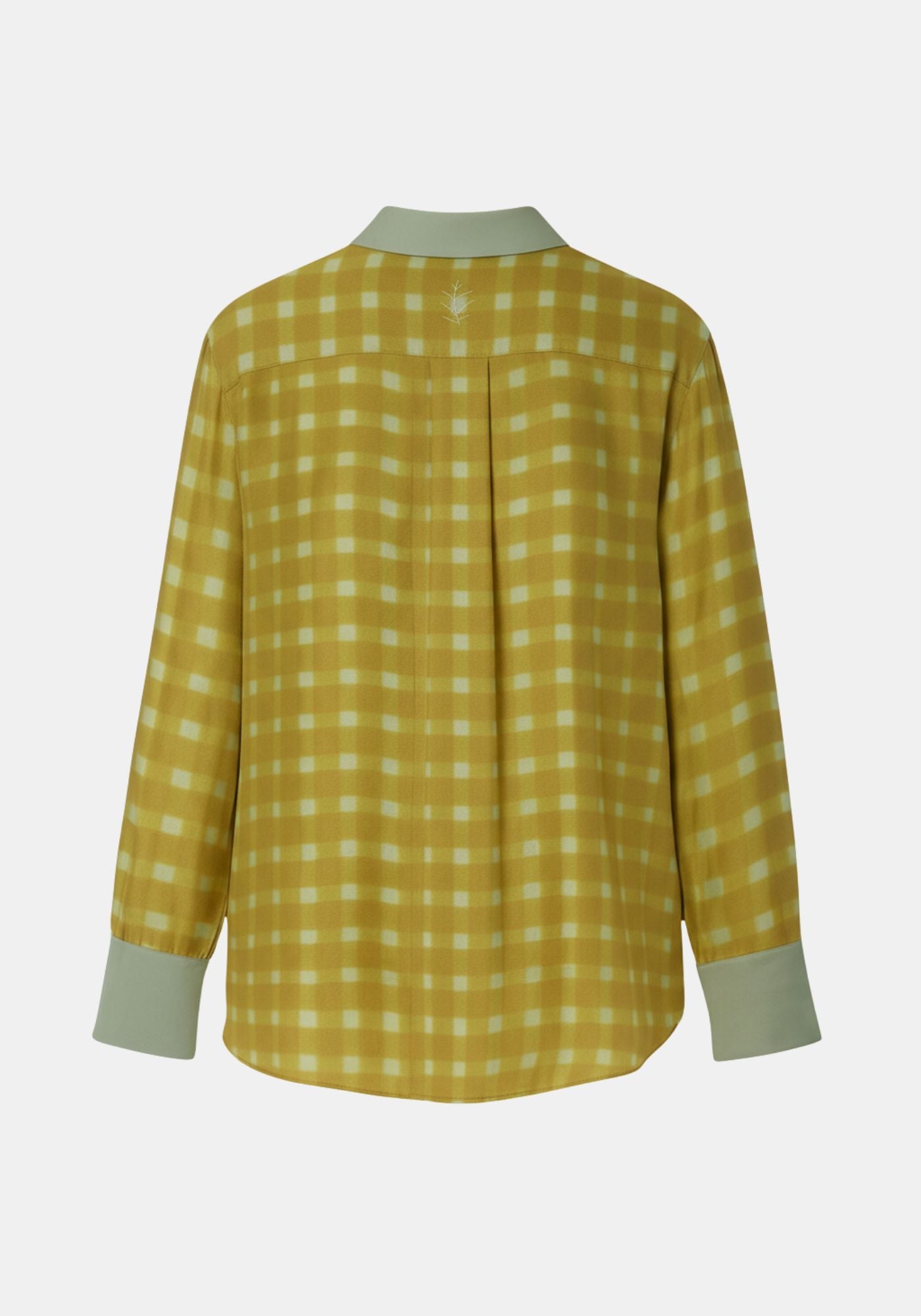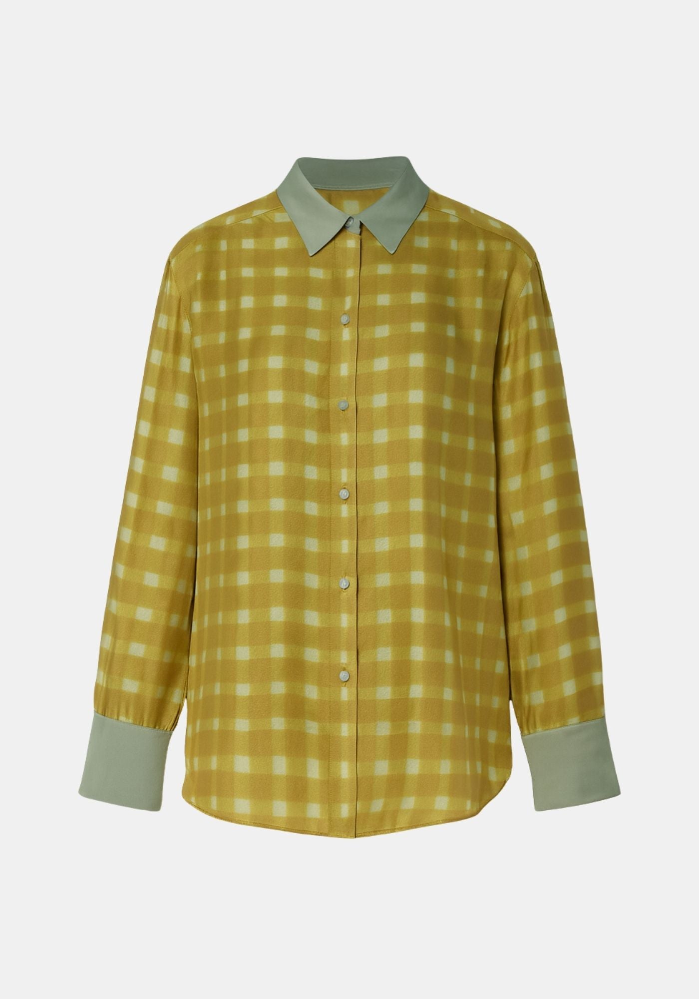 A straight-cut silk shirt adorned with an all-over TM-exclusive digital floral print. Contrasting cotton-silk details on the classic collar and high cuffs with mother-of-pearl buttons lend a refined touch. A gold metallic first collar button adds an extra element of luxury. Logo embroidered on the yoke lining.