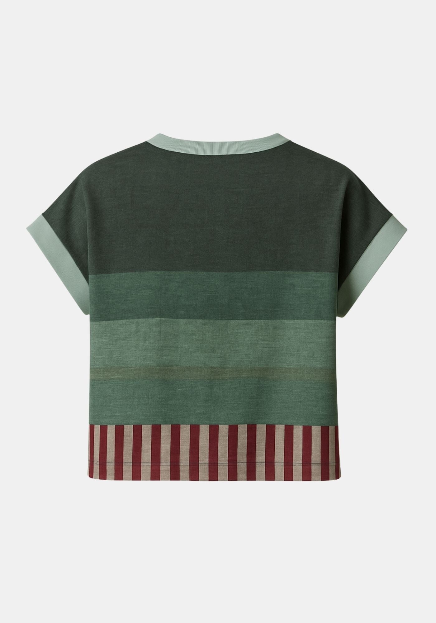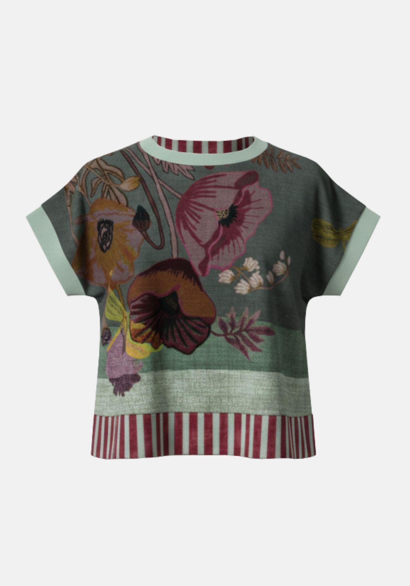 Oversize cotton jersey top featuring an exclusive TM digital printed duet. Double dowlayer for a beter finishing and cap sleeves for extra confort. Hand kanta stiches harmonize this piece. Embroidered logo.