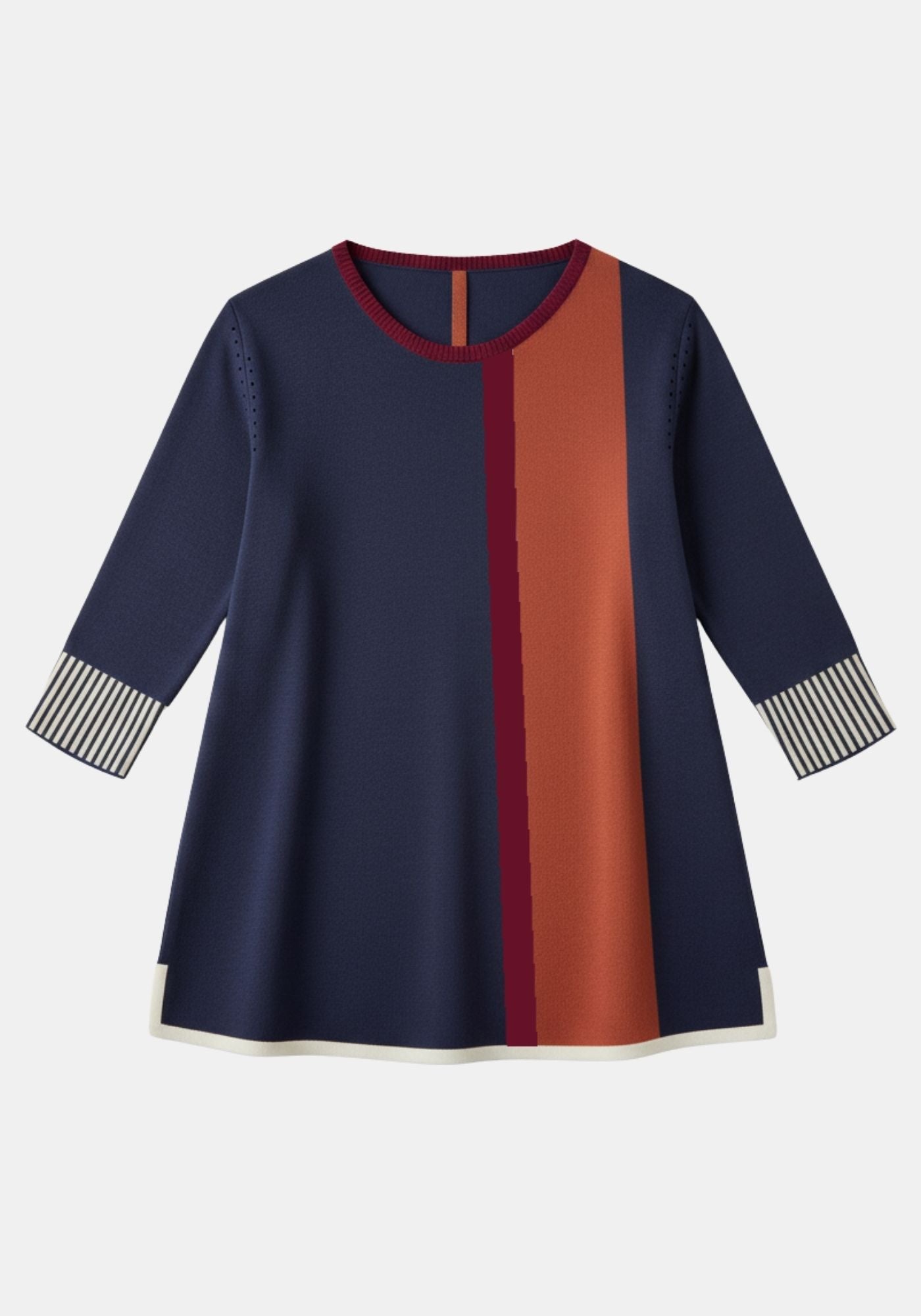 Silk and cotton blend knitted top featuring one stripe pattern in vibrant and unexpected colors and contrasting tubular knitted round neckline, cuffs and bottom hem.