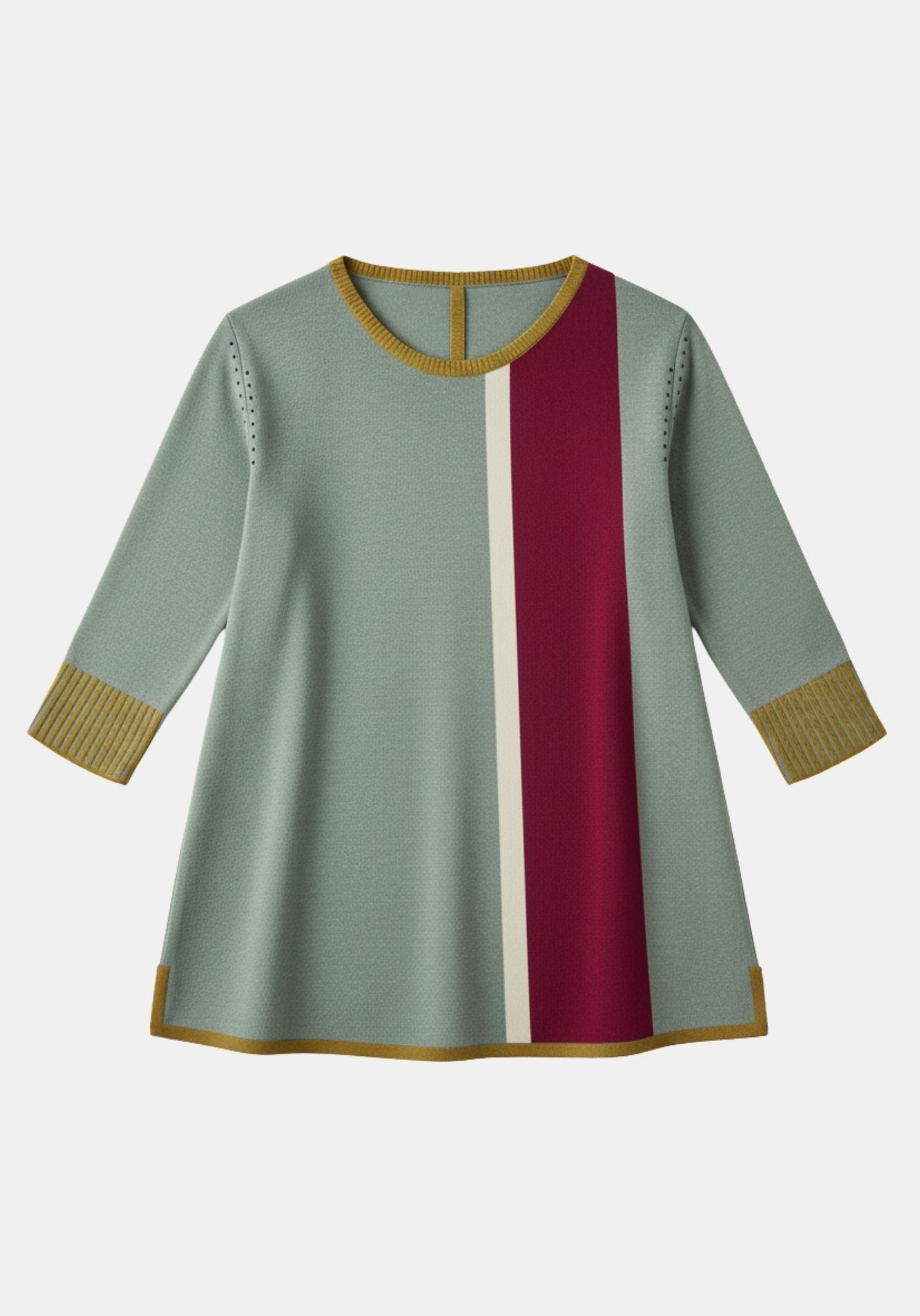Silk and cotton blend knitted top featuring one stripe pattern in vibrant and unexpected colors and contrasting tubular knitted round neckline, cuffs and bottom hem.
