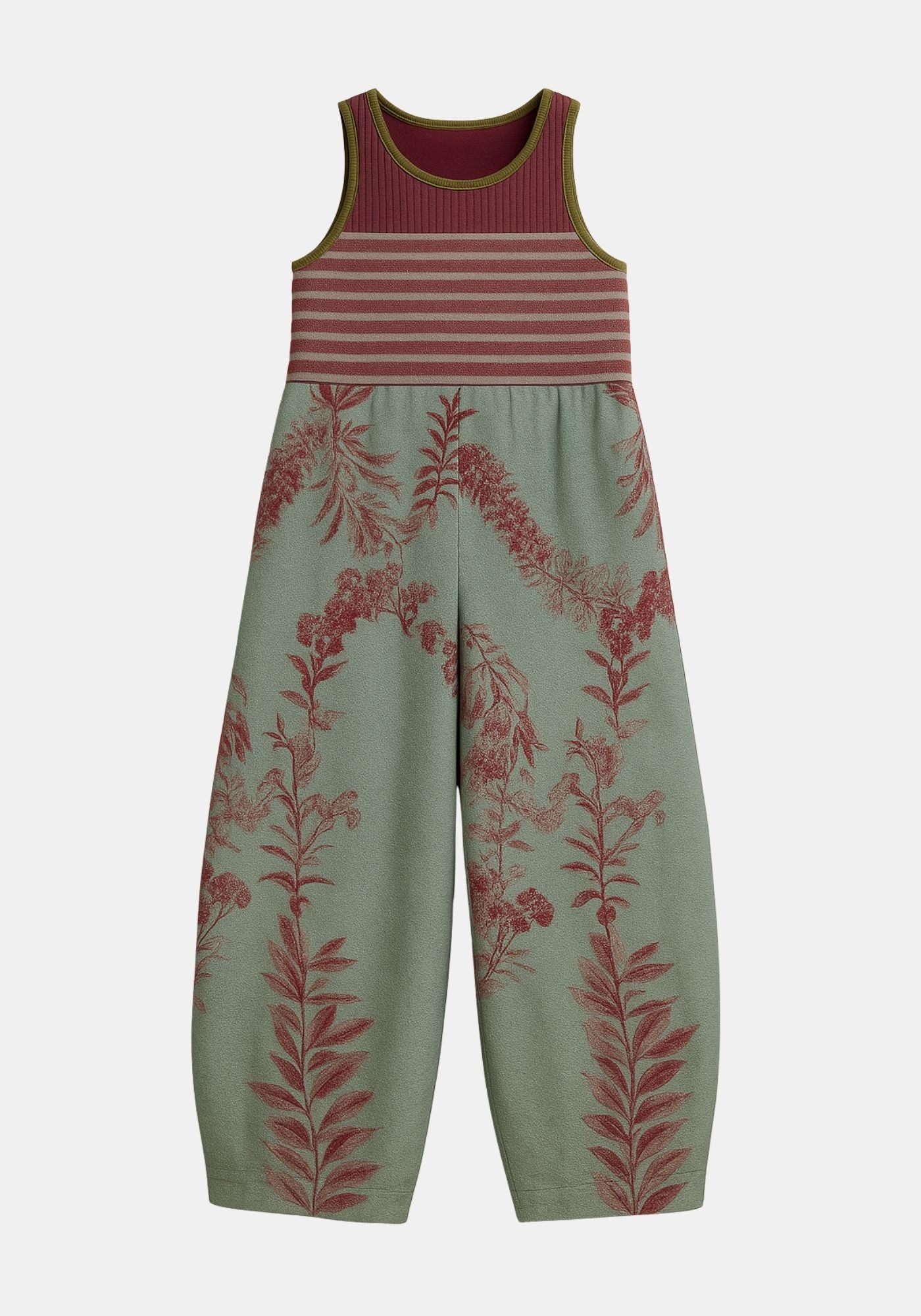 Poppy jumpsuit in silk and cotton 2 colours knit, sleeveless top with a Round-neckline with contrasting details. The silk trousers has an exclusive TM digital allover print.